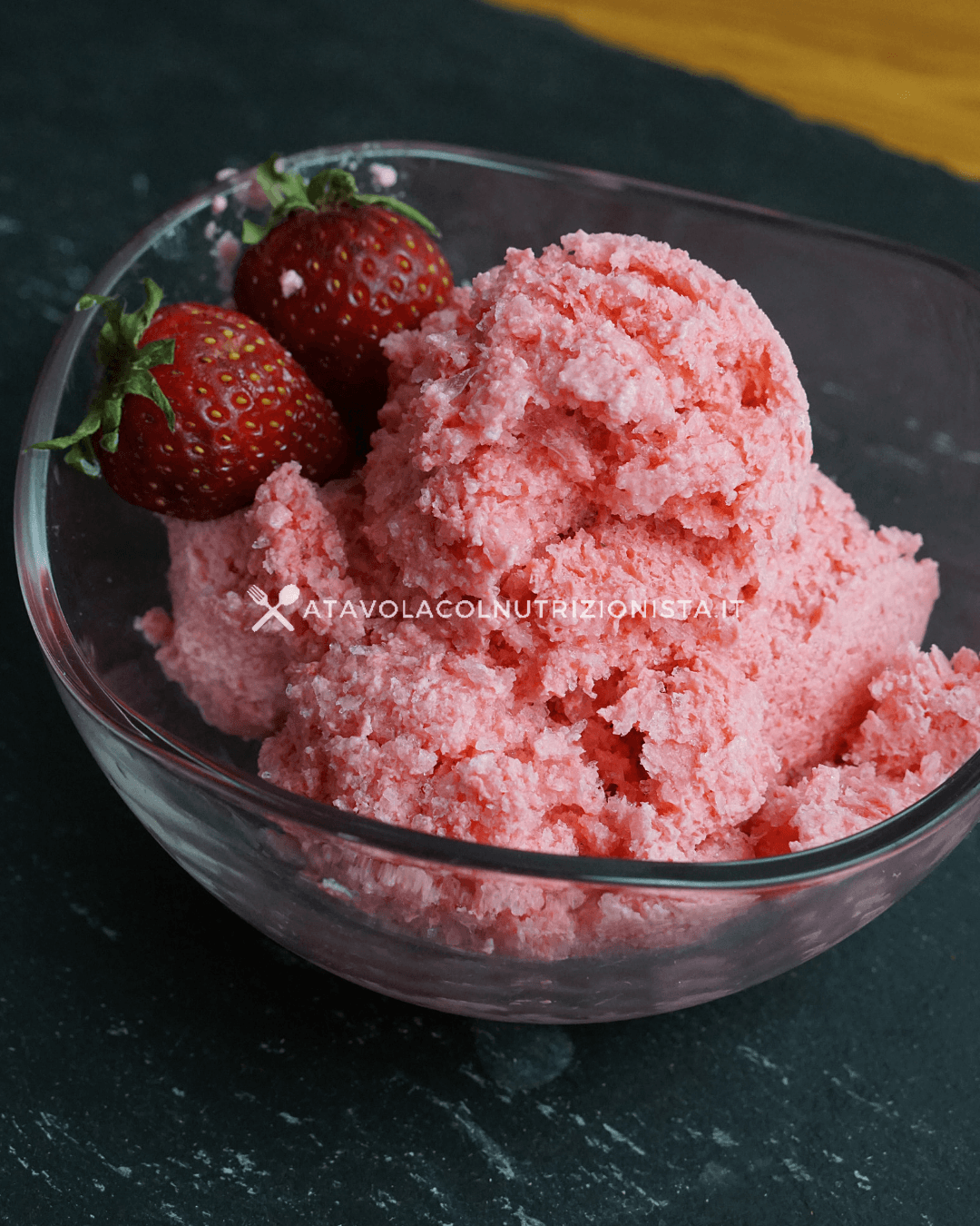 Il risultato è un gelato gustosissimo, leggero, perfetto per merenda o come dolce a fine pasto.