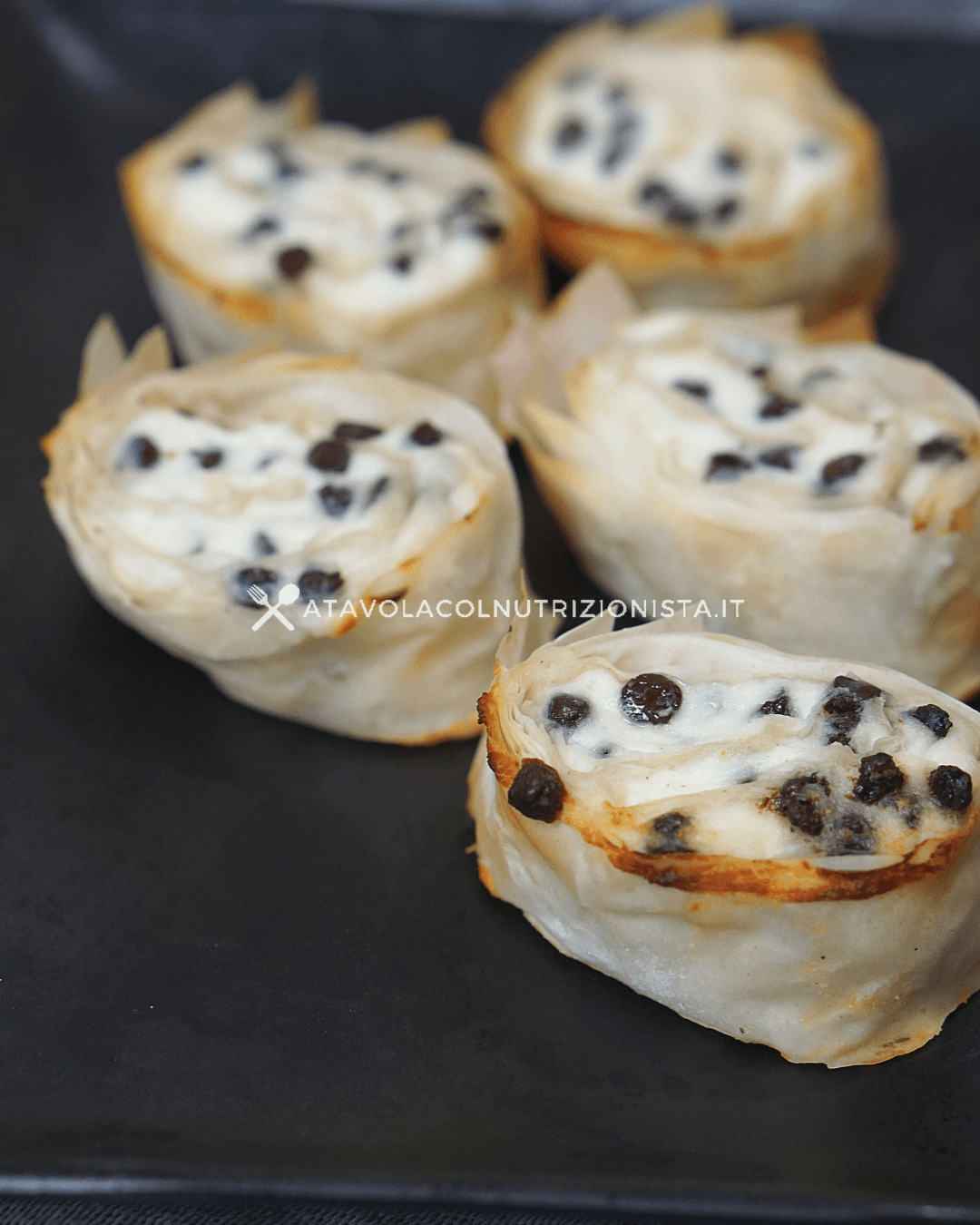 Girelle di Pasta Fillo con Ricotta e Gocce di Cioccolato