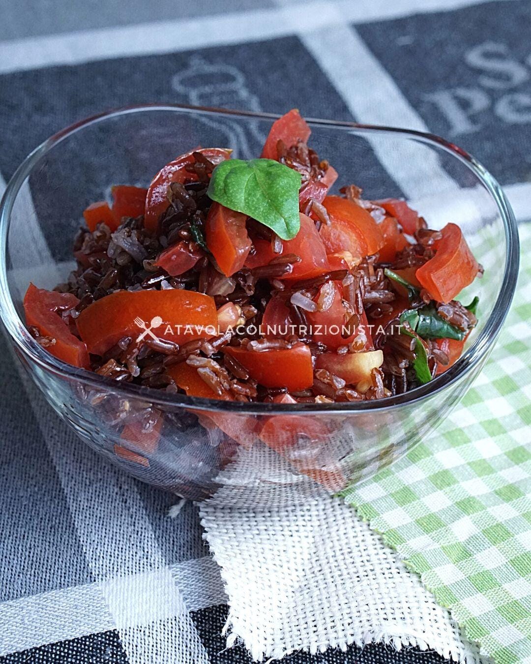 Insalata di Riso Rosso coi Pomodori, una ricetta semplicissima per un primo piatto freddo perfetto per affrontare la calura di queste giornate estive