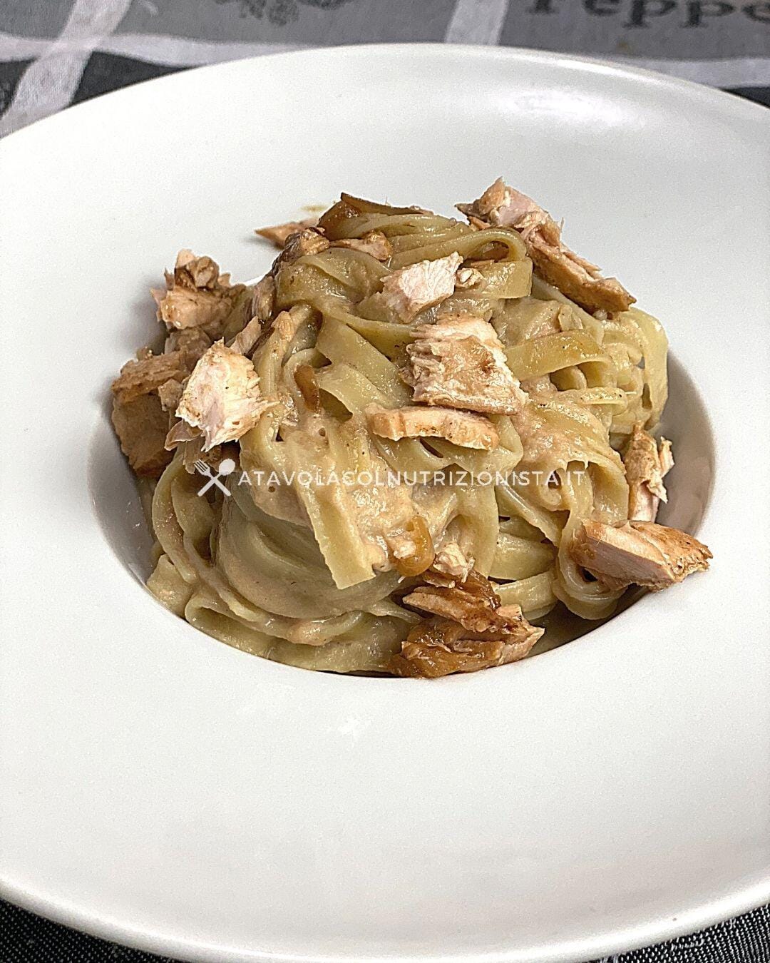 Pasta con Crema di Salmone e Cipolle, una ricetta per un primo di pesce perfetta per le tavole delle feste