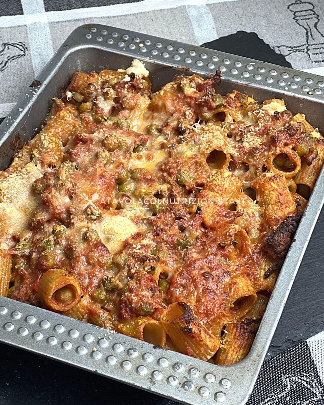 Pasta Integrale al Forno con Sugo di Carne e Piselli, una ricetta per un piatto unico di pasta super gustoso perfetto per il pranzo della domenica ma non solo