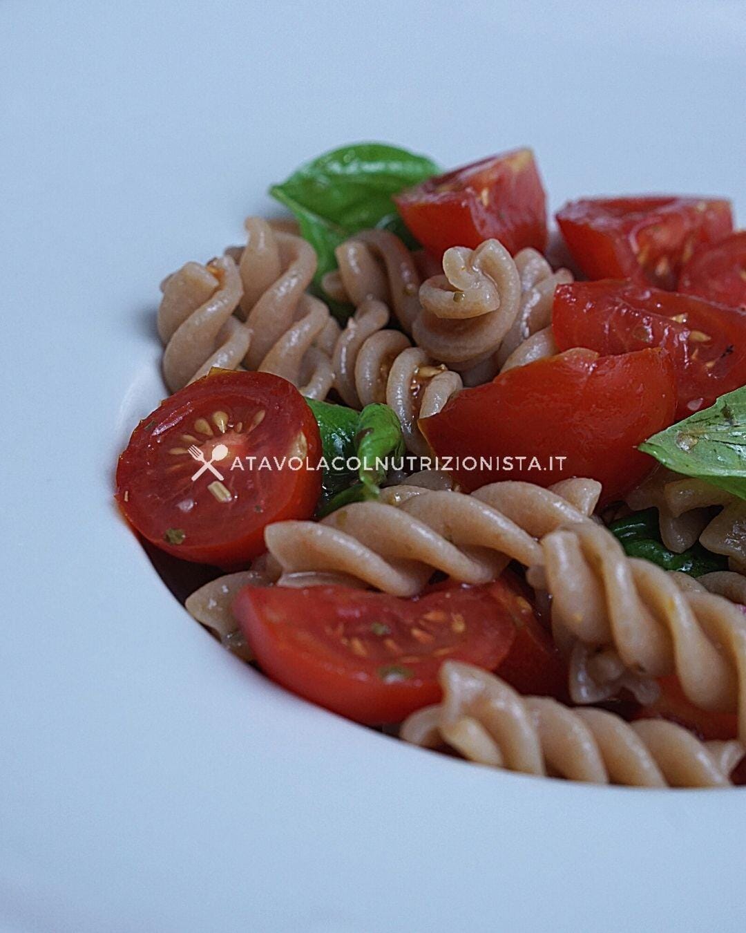 Pasta Integrale Fredda con Pomodorini e Basilico, una ricetta per un piatto estivo perfetto anche per essere portato in spiaggia nel mio pratico porta pranzo in bio plastica da fibra vegetale