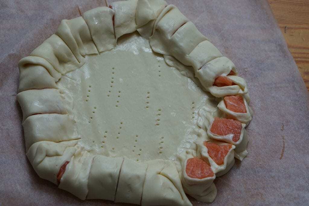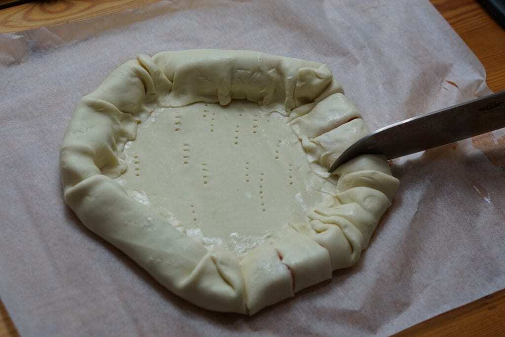 2 Fatto | Srotola il foglio di pasta sfoglia rotondo e punzecchialo con una forchetta |