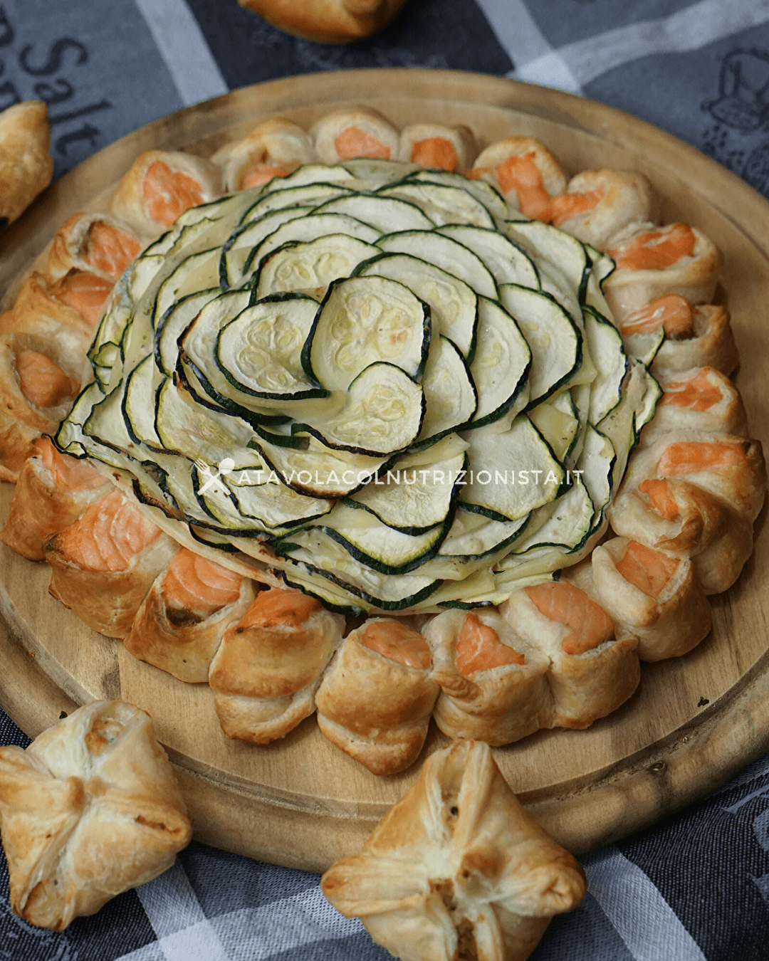 Tanto coreografica quanto gustosa, il risultato è una torta salata di sicuro effetto, buonissima e che arreda la tavola.